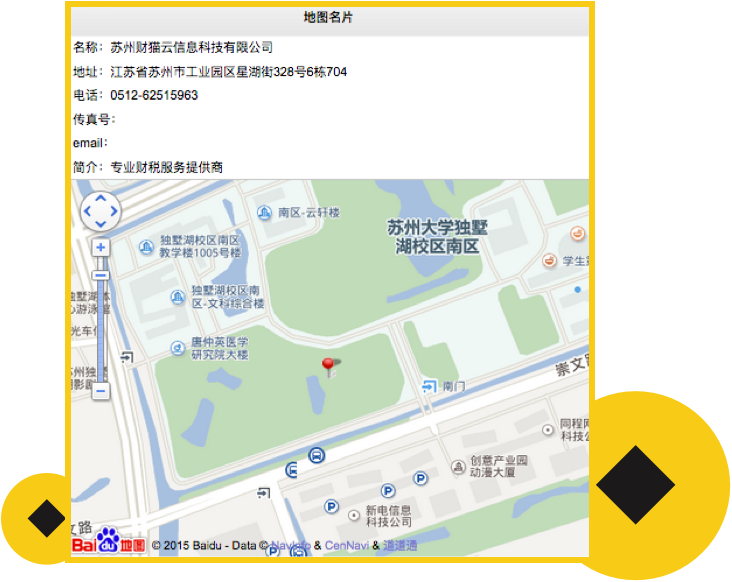 蘇州財(cái)貓?jiān)菩畔⒖萍加邢薰臼且患覍I(yè)從事信息技術(shù)開發(fā)與服務(wù)的科技企業(yè),財(cái)貓?jiān)剖瞧淦煜碌幕ヂ?lián)網(wǎng)財(cái)稅服務(wù)品牌, 蘇州南開之星會(huì)計(jì)服務(wù)有限公司則是其旗下專業(yè)交付財(cái)稅服務(wù)的全資子公司,是經(jīng)蘇州市財(cái)政局批準(zhǔn)成立、蘇州工業(yè)園區(qū)工商行政管理局登記注冊(cè)的正規(guī)專業(yè)財(cái)稅服務(wù)機(jī)構(gòu)。